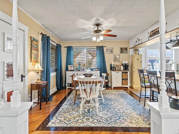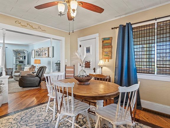 Beautiful two story home with nearly 2,000 finished sq. ft. of living space. Greeted by a long enclosed porch by the front door. As you enter, you'll be captivated by beautiful hardwood floors and front dining area. An open concept floor plan grants you three living areas all open for you to enjoy. Making the living room, dining and kitchen the perfect area to entertain or enjoy the Holiday get togethers. All, spacious rooms with plenty of natural light. A breakfast bar at the kitchen grants you extra sitting space for guests or casual meals. Off the living room, you'll find a main level bedroom with access to the bath for convenience and privacy. The second level hosts three large bedrooms with closets and plenty of room for extra furniture. At the back of the house, the laundry room with cabinet storage and a covered patio overlooking the backyard and oversized two car garage! Come tour this beautiful home on city utilities and in move-in-condition!