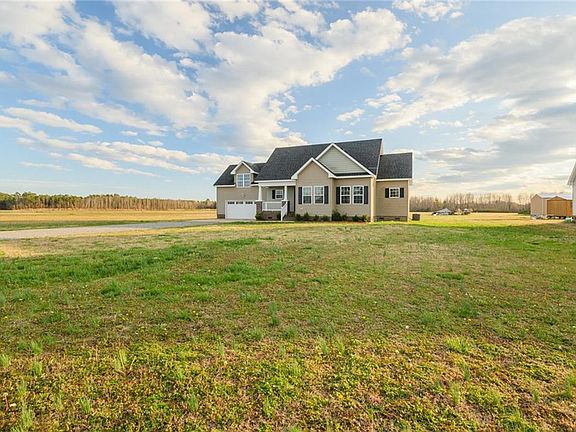 1 acre of open land; Back deck and patio with pergola; 3 bedrooms with good closet space in each - master bedroom has great walk-in closet; 2 full bathrooms; hall laundry closet, hall coat closet, spacious FROG; vaulted 14 ft. ceilings in living/ dining area and master bedroom. 9 ft. ceilings throughout first floor, 8 ft. ceiling in FROG. This is a great family home, with plenty of open space surrounded by farmland and located on a quiet family-friendly dead end road, perfect for taking a walk with very little traffic. No HOA. Well water with very nice whole-home water filtration system already installed. Crawlspace encapsulation/dehumidification system professionally installed. Large concrete driveway. This land is Flood Zone X - so no flood insurance is necessary!