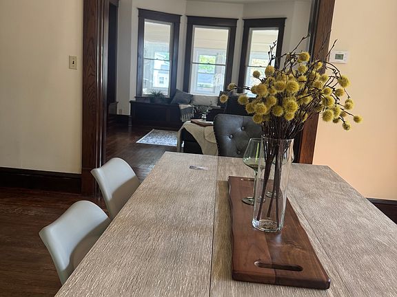 This home is in a beautiful historic neighborhood and sits on over half an acre of land in the heart of Mahomet. It backs up to a 13 acres park, surrounded by huge variety of flowers, shrubs and fruit trees.Two brand new bathrooms, new carpet, new light fixtures/fans, freshly painted and many more updates. Majority of the home has its original oak flooring. Laundry is on the main floor. All renovations were professionally done. HVAC ducts have been professionally cleaned. The 824 sq ft attic makes for a great extra space. This home has 3 stall detached garage and a shed with two lofts. New tennis/pickle ball courts are a 2 minute walk. Downtown is a few blocks away. Great access to 74 and 47. Minutes drive to Urbana, U of I, Carle hospital and Champaign. Lincoln Trails and Junior High are within minutes walk .The 13 acres park that backs up to the back yard gives access to soccer and baseball fields.
