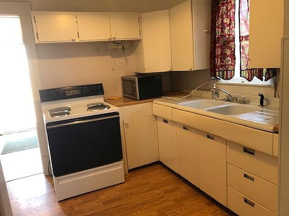 2 bedroom 1 bathroom home on nearly an acre on the edge of town. This home features an enclosed porch, sprinkler system, updated bathroom, newer flooring, a garage and large shed. The back 100x140 feet of this property is zoned county.