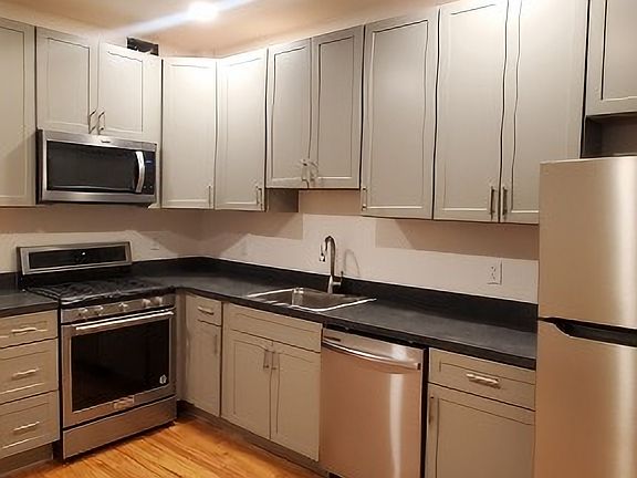 Spacious 3 Bedroom, one bath second floor apartment. Eat-in kitchen with new appliances and cabinets. Hardwood floors throughout. Ample closet space and in-unit laundry (combo washer dryer). Entry foyer and pantry! No pets and no smoking. 12 Month lease Tenant pays electric and gas