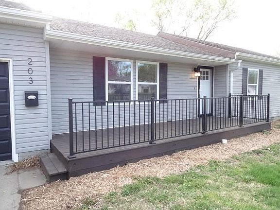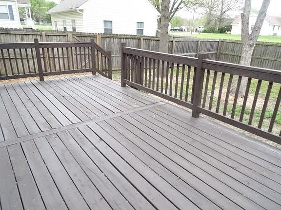 Beautiful home, remodeled, kitchen opened up into Living Space, new Porcelain Floors in Kitchen, Back Hall, Laundry, Back Bath. Original 1956 wood floors are gleaming. Abundance of new white cabinets in kitchen, white subway tile backsplash. All new stainless appliances, pantry. Plenty of floor space to have an Island or High Top Table. Back Entrance, Laundry room, Back Bath are all new. Bath has a walk-in shower, solid surface counter on the vanity. 3 of the bedrooms have the original wood floors and large closets. 4th BR has carpet on the floor for a little one to play on. Walk out the back door onto a large wood deck (owner even installed a natural gas hookup for your gas grill), This added living space is great in the summer as it is on the east side of the house. 2 shade trees in the back. Wood fenced area and lots of green space. New Windows, Architectural Shingles & gutters, Front porch has lots of space for lawn chairs or flowers, iron railing. New sidewalk in the front. 200 amp service-breaker box in garage. Don't miss out on this one. Close to grade school and high school. Park and swimming pool just down the street.