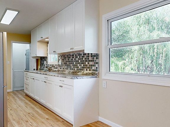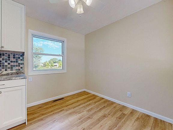 If you are a young family looking for a new home near an elementary school along with a completely fenced yard for your children and one that has been totally remodeled, - LOOK NO FURTHER!! On a quiet street with lots of trees, this MOVE IN READY home features soft close kitchen cabinets, tile backsplash, new countertop, and new appliances. The beautiful luxury vinyl plank flooring covers the living room, kitchen, and hallway. Each of the three bedrooms has new windows, new carpet, custom made closet doors, and new base trim. All the interior doors throughout the home have been replaced and all walls repainted. In addition, there are new light fixtures throughout the home. The bath upstairs has new ceramic tile surrounding the new tub, and new window, plus a new vanity and designer light fixture. The wraparound deck has been newly painted. The large corner lot has beautiful spring lilacs along the street side and alley entrance. There is a 75 x 132 privacy fenced back yard. The newly carpeted unfinished basement that could easily be a playroom, extra bedroom, laundry room or "man cave". Washer and dryer hookups are also in the basement, in addition to a newly built bathroom tub, shower, new vanity and flooring. The basement stairs have been rebuilt and carpeted. The one car garage offers a new steel door entering the basement and has a new garage door. The attached carport has a great garden or storage shed for bikes and toys. Don't miss this one!!