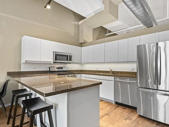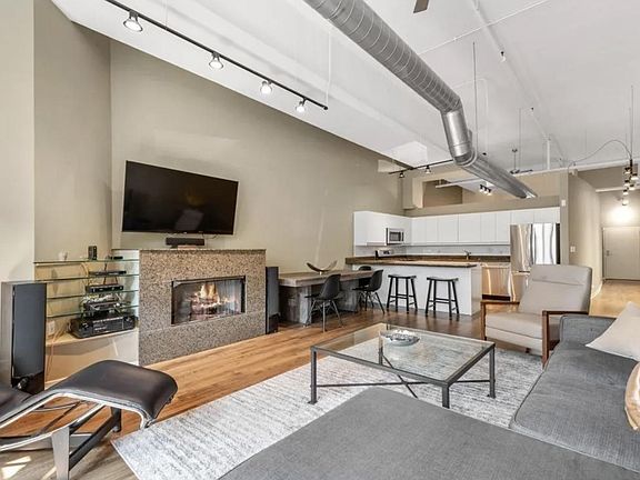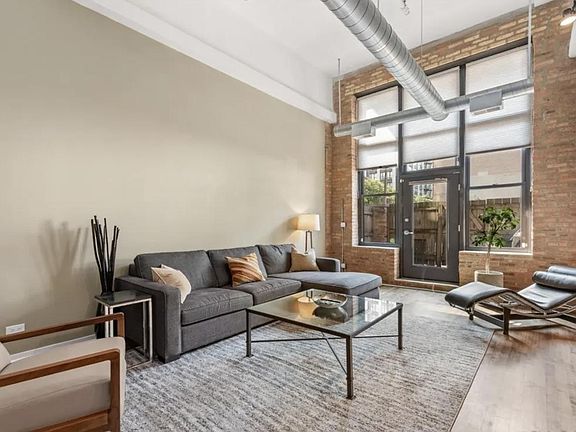 Ultra-cool West Loop industrial loft with 16' ceilings, gas fireplace, open concept kitchen and amazing natural light! The unit comes with private enclosed patio with beautiful pavers and secure private parking immediately outside. The home features hardwood floors, new carpet in bedroom, stainless steel appliances, and a luxurious bathroom with an oversized soaking tub, marble double vanity and walk-in linen closet. The unit comes with impressive closet space in addition to the oversized secure storage locker conveniently located in the hallway right outside the unit. The building even has a small gym which is a big bonus! This is the best location in West Loop. You're across from Mary Bartelme Park and just a few blocks away to Randolph Street restaurants and shopping! 12 month lease. Parking and internet are included in rent. $600 move-in fee in lieu of security deposit.
