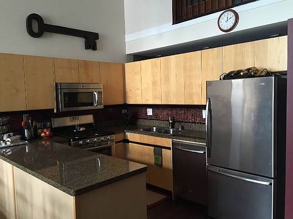 DRAMATIC 2br/2ba duplex loft w/18ft ceiling in HOT WEST LOOP! Endless sun w/14ft windows. Exposed original brick. Newly refinished maple hardwood floors. Custom backsplash in kitchen w/SS appliances, maple cabs + 1.5" granite counters. Xtra large, private master suite on upper level has huge walk in closet, custom glass railing, master bath w/marble surr shower & dbl sinks. Close to "L", 90/94, Whole Foods, Target, Google office & more. Across from park. Includes 1 garage parking spot.
