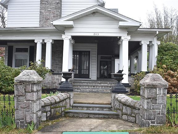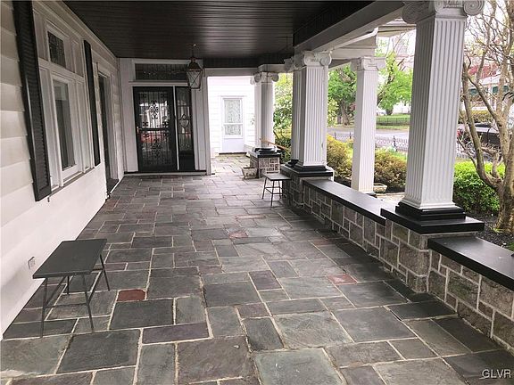 Picture yourself living in this Stately Home, approximately 4000 sf in size. You will love the "Old World Charm. Begin with the iron fencing surrounding the property. Step onto the 80' x 12' ++ slate covered wrap around porch. Once inside you will be awed by the incredible woodwork and hardwood flooring. You will find 5 very large rooms on the first floor, 2 fireplaces, a beautiful open staircase and room for "everything". There are 2 staircases to the 2nd level. Here you'll find 5 huge bedrooms ( with 2" solid wood doors ) as well as an office area, etc. Outside you will find the most unique 2 car garage in town. It is made out of cut stone, and has slate interior walls and a 2nd level for storage.