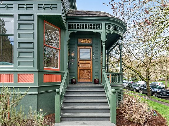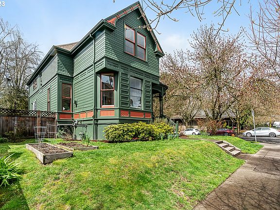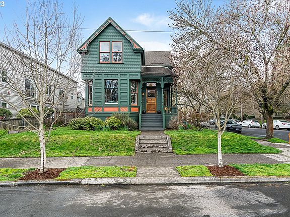 Own a piece of Portland's history! Located within walking distance of Southeast's most popular establishments, the Otto W. & Ida L. Nelson House is a registered historic landmark. The prominent corner lot is admired by many for its distinguished presence in the bustling Buckman Neighborhood. Bask in the delights of its charm from the illustrious front porch, adorned with original Victorian architecture. The main floor includes spectacular hardwood floors, high ceilings, unique crown molding, new light fixtures and a refreshing kitchen remodel. Natural light pours into the house by way of expansive bay windows. The open and airy living/dining room flows seamlessly into the spacious kitchen - making it the epicenter for entertaining. Nestle up with a book in front of the fireplace in the darling family room, or enjoy the comforts of working from home in the office featuring floor to ceiling built-ins. Upstairs you'll find four bedrooms - each with their own walk-in closets. The dazzling primary suite includes a en-suite bathroom and large walk-in closet. The finished lower level touts a separate exterior entry, full kitchen, full bath, loads of storage, as well as two spacious rooms that have endless possibilities - think guest quarters, ADU, movie room, gym - you name it. Enjoy the fully fenced, private yard with patio, sizable lawn and tool shed, the raised beds, as well as the mature plants populated throughout the property. [Home Energy Score = 1. HES Report at https://rpt.greenbuildingregistry.com/hes/OR10182580]