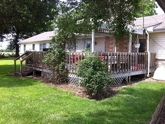 Really nice rural setting with mature shade trees, sweeping circular drive. Spacious rooms. Hi-Eff FAG furnace, AC. Newer heat/air duct work, 5-burner range. Handicap friendly including entry ramp and low, step-in shower. Multiple pocket doors. 23' x 18' deck. Water hydrants. 30' x 50' machine shed has 1/3 concrete, 2/3 gravel floor, 110 & 220 wiring. Current owners updated to thermal windows, home exterior including vinyl siding, septic lateral field. Security light and propane tank are reportedly owned.