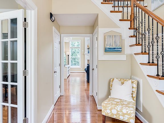 Executive-style home with rocking chair front porch in convenient Cary location. Spanning over 3,000 sq. ft. with detailed molding and gleaming hardwood floors, this stunning home features a private study, formal dining room, first floor laundry room w/sink, gourmet kitchen with granite counters, pantry and SS appliances. First floor flex room & full bath with dual staircases to the second floor boasting an over-sized bonus room. Fenced-in yard ready for entertaining & minutes from PNC, Crossroads, & I-40