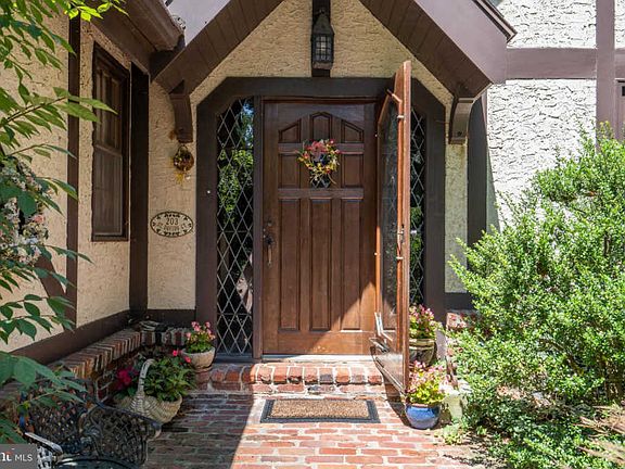 Welcome to 203 Saint Davids Ct, a custom built Tudor style home with master ensuite on the main level located in the highly desired South Wayne neighborhood. Private driveway leads you to this uniquely designed home with stunning architectural details throughout. Fall in love with the antique brick driveway/walkway with mature landscaping creating great curb appeal. Step inside through the two-story foyer to find gorgeous wood banisters, exposed beams, hand leaded individual glass pane windows, and beautiful oak hardwood flooring that spans throughout this wonderful 4 bed 2.2 bath home with 3,238 sq ft of finished living space. Huge natural wood ridge beams from Oregon, natural wood columns, and decorative crown molding are just a few custom features this impressive home has to offer. To the left of the foyer is the expansive sunken Great Room with 22ft+ high ceilings with the loft overlooking. The focal point in this room is the massive brick wood burning fireplace and mantel with more of those stunning custom windows on each side. This room is equipped with a wet bar perfect for holidays and family gatherings! The great room is completely open to the dining room with plenty of seating, perfect for entertaining, decorated with beautiful woodwork and a slider door to the back deck for lots of welcomed sunlight. Continuing on is the kitchen offering more natural light shining through the window and slider door, tray ceiling with wood detail, beautiful built-ins and space for a breakfast area. The sliding door leads you to the amazing deck overlooking the serene wooded lot creating an ideal landscape for privacy, the perfect place to enjoy a cup of coffee to start the day or for a bbq and enjoying the outdoors! Carrying on is a lovely den and also conveniently located master bedroom ensuite. This wonderful and spacious ensuite bedroom offers plenty of space for a bedroom set and has two closets. The ensuite bathroom, panelled with beautiful cedar wood ceiling and neutral tile walls and flooring, offers a dual vanity and shower tub combination. There you will also find a walk-in closet with built-in drawers. The main level is complete with a powder room in the foyer. Walk up the staircase to the upper level on the right is a cozy carpeted hallway with three bedrooms that share a full hall bathroom. Down the hall on the left is the truly amazing loft. From vaulted ceilings, to the window bench seat, the sliding door to the outside balcony overlooking the woods, this room is an added bonus to this wonderful home. Additional storage can be found upstairs in the linen closet and awesome cedar closet! More living space can be found in the finished walkout basement with a second half bathroom, a great laundry room, and unfinished workshop/utility room. Here is where you will find access to the oversized 2 car garage. Brand new Andersen slider door leads to the backyard and patio area below the deck, another private place to relax; a true extension to the home! All this, plus, all Pella windows and doors throughout, the HVAC was replaced just 3 years ago, top notch heating system, and newer roof. This home is located in the award winning Radnor School District and just a short 3 block walk to the Saint Davids Train Station making a convenient and easy commute to Center City Philadelphia! Just minutes away you will find local schools and universities, a great selection of restaurants, shopping, and the Anthony Wayne Movie Theater. These are just a few of the many pleasures of living in the heart of downtown Wayne, a walkable community with old fashioned traditions and modern sophisticated attractions. Philadelphia International Airport and sporting arenas are all easily accessible via public transportation or with easy access to major highways such as 76 and 476. Do not miss your chance to own this lovingly cared-for and well maintained home in its highly desirable walk-to-Wayne location!