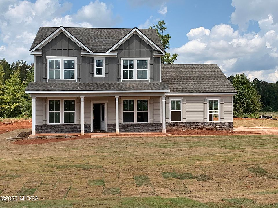 The Lakehurst Plan built by My Home Communities. This Two-Story Home will be built on a minimum 1 Acre lot with Farmhouse exteriors, Stone Water Table, and a Side Car Garage Entry. Interiors include a Study, Dining Room and spacious Kitchen overlooking the Family Room. The kitchen has an abundance amount of cabinet space and a pantry closet. Breakfast sitting area to rear of kitchen. Granite countertops are in the kitchen and all bathrooms. LVP flooring in the main level common areas. The primary suite will have a separate tub/shower, double vanity, and large walk-in closet. Additional features will be a mud bench, rear exterior covered porch, subway tile back splash in kitchen, judges panel in dining room and garage door opener with remote. Projected completion is September/October 2023. Located in North Macon, GA with Great Schools. Secondary Photos are stock photos. Total Square Footage is approximate and includes main and upper level. Ask about 5.5% guaranteed rate PLUS $5,000 in closing costs with the use of MHC Mortgage (close on or before 12/31/2023).