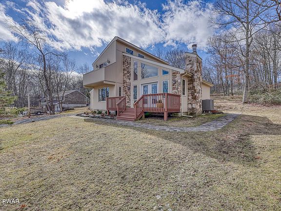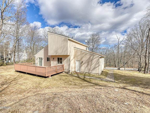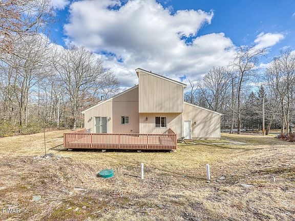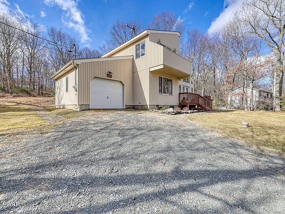 Welcome to this well-maintained, Contemporary 3 Bedroom, 2 Full Bath Home, located on a private 1.04 acre parcel in the desirable Conashaugh Lakes Community. With many desirable features, including vaulted ceilings, an open concept living/ kitchen area with lots of natural light, shiny hardwood floors, exposed wood beams, a stone-faced wood burning fireplace, upgraded lighting, two 1st floor bedrooms and large main bedroom w/ ensuite bath, walk-in closet and loft, and attached garage, this 1368 sqft home has it all! The kitchen features a center island, granite countertops, wine cooler and natural wood cabinets. Enjoy the surrounding nature from your large deck, quaint porch or private balcony, or enjoy the many community amenities including a private lakes. SELLER OFFERING FULLY FURNISHE, Beds Description: 1 BED 2nd, Beds Description: 2+Bed1st, Beds Description: 1 BED 2nd, Baths: 1 Bath Level 1, Baths: 1 Bath Level 2, Eating Area: Dining Area