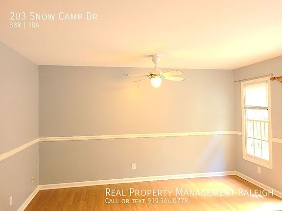 This 1600 square foot single family home has 3 bedrooms and 2.5 bathrooms. This home is located at 203 Snow Camp Dr, Cary, NC 27519.