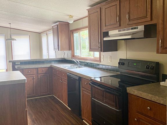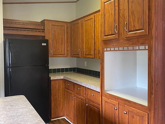 3 bedroom 2 bathroom mobile home on over half an acre for rent. Split-Floor plan features two separate living areas, one with a fireplace. Large Kitchen with plenty of Cabinetry, Breakfast Bar, Dining area, and Appliances including: Dishwasher, Stove/Oven, Vent Hood, and Fridge. Master on one side of home, With the other 2 bedrooms and another full bath on the opposite side. Master bath has double vanities, Storage cabinetry, Separate shower, and soaking tub. Laundry room with hookups - Washer/Dryer not included. Large front porch.