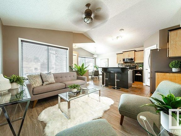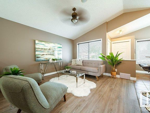 Move in Ready in the Family Friendly Neighborhood of Southfork! This Charming Bi-Level built by Jayman offers over 1760 sqft of living space. Located in a quiet Cul-De-Sac with west facing pie shaped lot, fully fenced and landscaped w 2-tiered deck, ideal for entertaining! Back lane access w concrete pad ready for a 22x20 Garage. Welcoming front entrance leads up to the main level with updated vinyl plank floors, vaulted ceilings, open floor concept with living & dining room views to the back yard. Raised bar island in kitchen w updated appliances, maple cabinets and corner pantry! Generous sized Primary bedroom w Walk-In Closet. Main floor bath has walk in shower. An additional bedroom completes the main level. 9ft ceilings both up and down! Lower level offers two more bedrooms, 4-piece bath, family room, utility room with washer/dryer, and ample storage space. Built in Speakers and Wired for your Sound System, Brand New Ring Doorbell. It's The Perfect Home with Great Curb Appeal. Welcome Home!