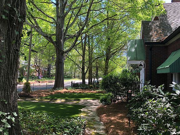 A special opportunity to find an all brick Tudor from the 1930's in excellent condition. Crown moulding, 7 1/2" baseboards, refinished hardwoods and 9 foot ceilings throughout the house. Original antique light fixtures and door knobs with key. Two fireplaces with one having gas logs. Master suite with remodel bathrooms on each floor. Kitchen has been remodeled with custom cabinetry and hood, built-in drawer style Thermador microwave, 4 gas burner with griddle Thermador range, Thermador dishwasher. Partially refinished basement with laundry room and outdoor access. Large deck with built-in accessible ramp off kitchen entrance, screened in porch adjacent to attached carport with side entrance into the home, 3 car detached garage with upstairs apartment including full kitchen and full bathroom. Possible extra income with 1,080 sq ft studio apartment. Large detached workshop, pool house with built in bar and storage building. Underground fencing for dogs around entire property. Physical fencing surrounds property including original iron fence. Rare large lot size exceeding an acre in the downtown Concord area, includes rear access and drive via commercial sized gate from side street.