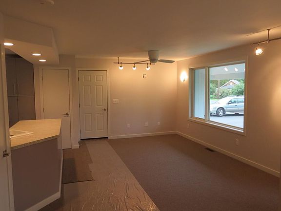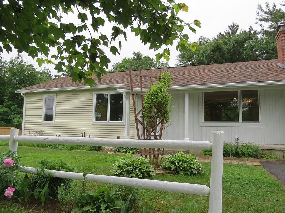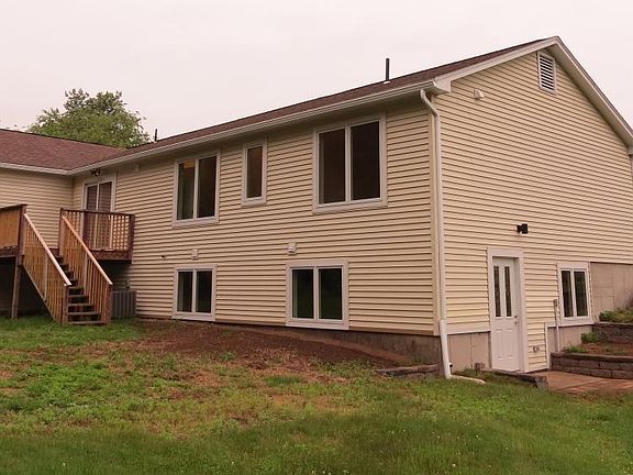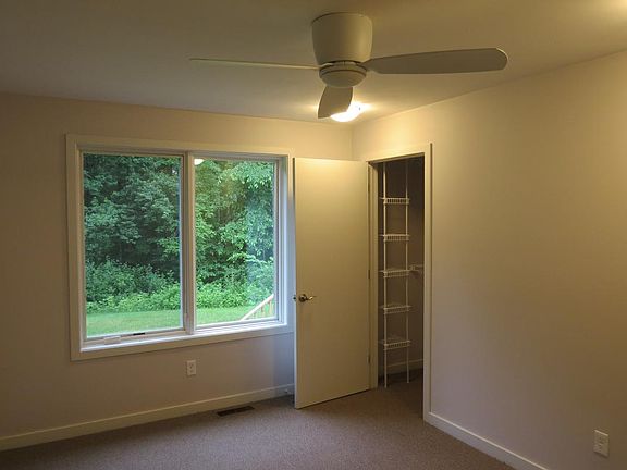 This rental was completely renovated six years ago. The living room is 21' x 13' with windows on one side and an open bar on the other. The bar opens into a kitchen with a dining area, and sliding glass doors that offer a view of the yard, the conservation area beyond, and a newly constructed deck. The unit has central heat and air, a master bedroom with bathroom and walk-in closet, and two additional bedrooms with a shared bathroom containing a laundry facility. These two bedrooms each have closets. There is also a coat closet near the living room and a linen closet in the hallway that leads from the living room to the bedrooms. The basement is available for more storage. A bus stopped is located at one end of the street and there is a playing field, open to all, at the other end of the street. A trail near the playing field leads into the conservation area where there is a lake and a small river. Water and sewer, are included in the rent. Electric is paid by tenants.