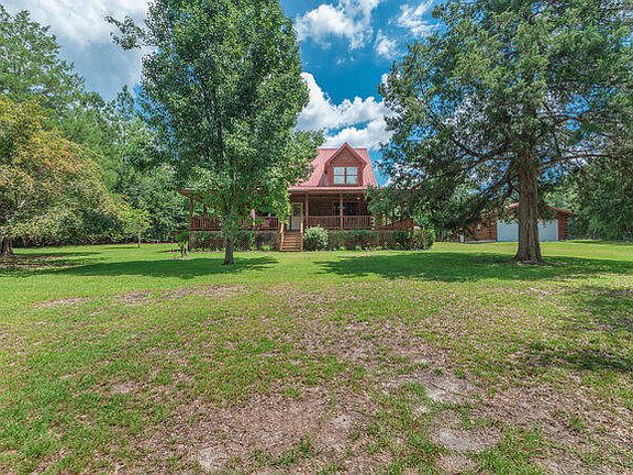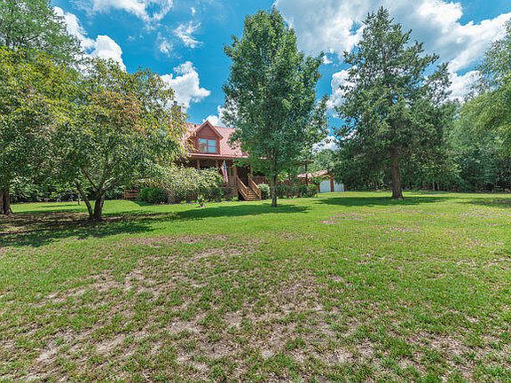 Hunter's Paradise! Charming Log Home on 20+ Acres! Discover this beautiful 2-bedroom, 2-bath log home nestled on 20.48 acres of serene countryside. A portion of the land is in pasture, with the remainder featuring a mixture of hardwoods and pines - truly a deer hunter's dream. Inside, the open concept floor plan has a spacious great room and boasts a wood-burning fireplace with ample space for entertaining. The primary bedroom is on the main level. The second story has one bedroom and a bonus room designed to be able to convert to a third bedroom if needed. The home is equipped with two HVAC systems for year-round comfort and a pool table! Enjoy the outdoors from the wrap-around porch covering three sides, a patio, and a dedicated location already set up for a hot tub. A matching detached two-car garage provides plenty of storage and convenience.