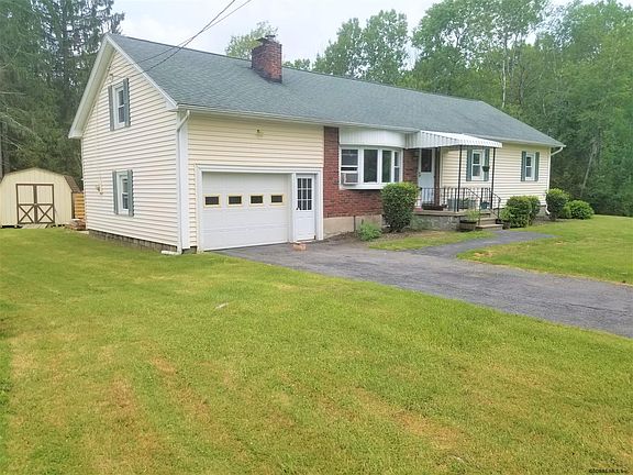 Quiet well cared for home just outside the village. Sits on 1.5 acres bordering wood land. Spacious 4 bedroom, 1 bath with a sweet country kitchen. Newer wood burning stove. Wide plank floors all in a warm pallet of colors. French doors walk out to a large back deck that overlooks a well manicured property and a peaceful setting. Full basement can be turned into additional living space where the owner spared no expense having a Adirondack basement system installed. Taxes are without exemptions.