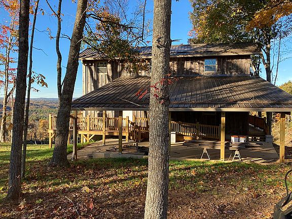 Fully renovated and remodeled rustic home in the Blue Ridge Mountains of Carroll County, VA. Board and batten siding with barn wood interior paneling. Gorgeous refinished hardwood cherry floors. Floor to ceiling natural stone wood burning fireplace on main floor, currently fitted with propane gas logs. Full unfinished basement with fireplace and wood stove. Basement has rough-in plumbing for future 3rd bath, with room for fourth bedroom, and game/family room. Home square footage increases to 2850 with finished basement. New 950 sq. ft. wrap around deck with handicap accessible wheelchair ramp. New metal roof in 2021. Private gated gravel drive with covered 2 car carport and additional parking. Well and spring for water, with on site septic. House sits on 10 acres with exceptional mountain views. New doors and double hung windows throughout. New HVAC and on demand propane water heater, underground electric, and 15 KW automatic Generac generator. Full home security system. House includes all new kitchen appliances, refrigerator, microwave, gas stove and range, garbage disposal, and dishwasher. Laundry room on main floor includes washer and dryer. Spring location perfect for future pond.