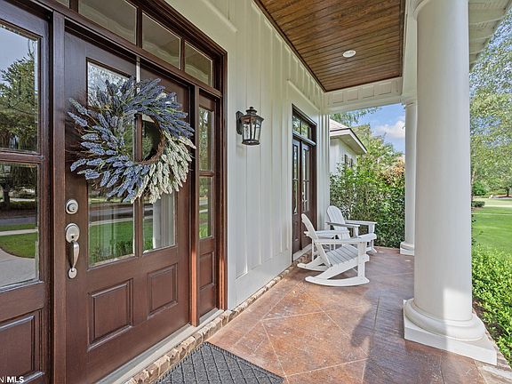A gracious and inviting front porch welcomes you in to this meticulously maintained home, located on the professionally landscaped corner lot in Fairhope's highly-desired Stone Creek! The convenient split floor plan includes 4 bedrooms and 3 baths on the main level, including a Jack-and-Jill bath between two of the bedrooms on one side, and the primary bedroom with ensuite as well as a hall bath, conveniently located next to the 4th bedroom on the opposite side. Upstairs is a large bonus room w/bath that could serve as a 5th bedroom! Luxury crown molding is featured throughout with custom shutters in many of the rooms. The kitchen features a Subzero refrigerator and Wolf stove top! Enjoy your large screened-in porch w/wood burning fireplace for relaxing with coffee or entertaining- overlooking a wooded and private back yard. A multitude of updates and additions to the home have been very recently completed. The entire inside of the home was professionally painted in soft neutral colors in 2023, including the ceilings, baseboards, cabinets, trim, and doors (both interior and exterior)! Gorgeous white quartz countertops and backsplashes were also installed in the kitchen and laundry room in 2023, along with new plumbing, fixtures, and disposal. Lighting and cabinet pulls were updated throughout in 2023. Rounding out the 2023 improvements include fresh plants in the front flower beds and sod. The driveway was leveled and repaired, and the repairs are under warranty. Late 2022 updates include new flooring throughout (with the exception of the bathroom and laundry tiles), and a new 50 year architectural fortified roof. A top-of-the-line Kohler whole house generator and a Halo million gallon whole house water filtration system provide peace of mind! Stone Creek neighborhood amenities include a beautiful zero entry pool, clubhouse, and tennis courts, along with several ponds for catch & release fishing, waterfall features, and fun activities throughout the year!