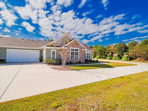 Spacious condo living with that real home feel. All situated on one floor, this split floor plan two bedroom home boasts two master suites on opposite sides of the home. One bathroom has a double sink vanity and shower and the other has a tub/shower combo and single sink vanity. This open floor plan has vaulted ceilings, a two car garage and plenty of storage. The kitchen and dining area open nicely to the living room and Carolina Room/den. The sellers have installed a whole house water purification unit along with the new water heater in 2022 & new dishwasher in 2024. There are plenty of windows for more natural light. Located just minutes from golf courses, Rt. 31 and the beaches of the Grand Strand. POA dues include water, sewer, cable, internet, building insurance, wind & hail insurance and a beautiful clubhouse and pool. Homeowner is responsible for HO6 insurance.