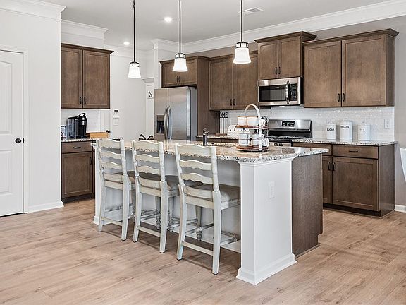 Based on our top-selling plan, this fully loaded Harrington delights with its massive second-floor owner's suite privately tucked away on the same level as its three additional bedrooms.. The first floor impresses with an open concept family room centered by a linear electric fireplace! It just keeps giving with a breakfast nook and large center island, plus a study upon entry into the home with sophisticated french doors. At the rear of the home is an extended covered patio for indoor/outdoor living. Upstairs the owners suite has a large private bathroom with soaking tub and separate tiled shower. The owners suite also has its own entrance into the laundry area!