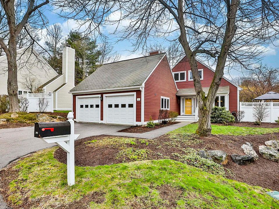 Completely updated Straw Hill Condo with attached 2 car oversized garage. Fully applianced kitchen with quartz counters, stainless appliances, built-in baking center, tile flooring, see thru to dining/living room. Formal dining room with built-ins and sliders leading to stone patio. Formal living room with built-in window seats, gas fireplace, tons of windows for natural light. 1st floor master with private bath. Laundry room with built-ins. The 2nd floor has 2 bedrooms and 3/4 bath, Built in eve storage. Home features gleaming hardwood floors throughout the 1st floor, custom built-ins, freshly painted, window treatments, direct entry from garage, central A/C, Irrigation system, nicely located on level lot. Subject to the seller finding suitable housing. Open house Sunday April 21 from 11:00 to 1:00 Move in condition. Come and take a look, absolutely lovely.....
