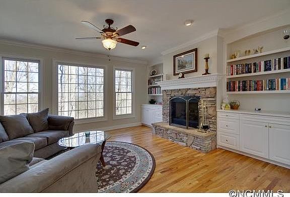 Meticulously maintained & updated, this well-appointed traditional home offers a rare combination: a natural, wooded setting in a gated community close to shopping, restaurants & downtown Asheville. The open floor plan flows well with sweeping winter mountain views from the great room, kitchen & breakfast area. Hardwood floors on main level, granite, new stainless oven/range & microwave, stone gas fireplace & built-ins. Part-finished bsmt w/full bath. AHS home warranty included!