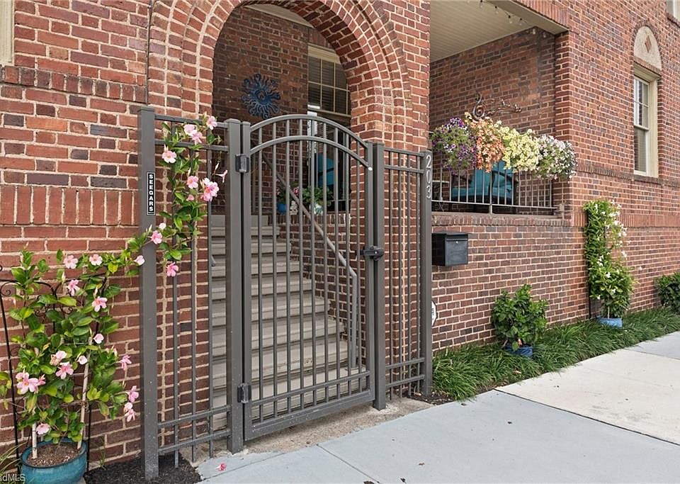 Rare opportunity to own this Soho-style totally renovated 3 bedroom condo with views of Tanger Center, GSO History Museum, LeBauer Park, The Children's Museum, and WWI Memorial Park. You will fall in love with the well preserved architectural features such as high ceilings, real oak and pine flooring, cook's kitchen with quartz counters, custom cabinetry, Bosch appliances and window seat looking out at the park. Over-sized living room and dining room, and main level 1/2 bath. 3 bedrooms and full bath on upper level. Generous closet space and unheard of basement storage. Front porch with exposed brick arch gives you the outdoor living space everyone craves. HOA dues only $200/per month. Enjoy walking to all that downtown Greensboro has to offer. There is no other unit like this in the city.
