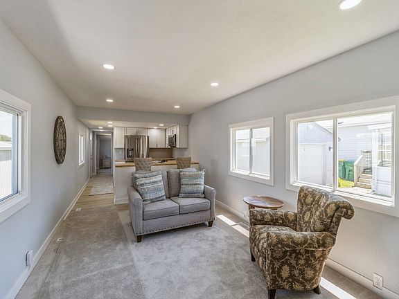 Beautiful Newly Remodeled Mobile Home in Quiet Western Village a 55+ Community. Brand new inside and out! All new LVP Flooring throughout. Drywall interior. Open living room and kitchen with white cabinets, and SS Appl. Primary bedroom with large closet and built in closet organizers. Nice 2nd bedroom. Stackable washer/Dryer. New Tankless water heater. Furnace & A/C approx. 3yrs. All new siding and windows. New front deck. Oversized one car garage. Maintenance free home! Lot Rent $550. 2024-07-17