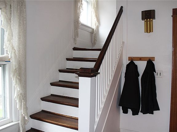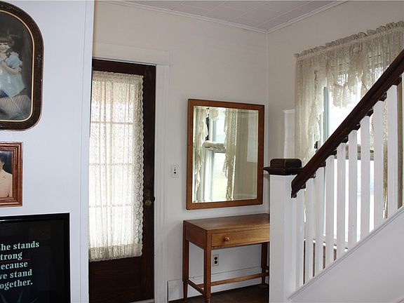 Old world charm galore in this well maintained home built in 1918. Updated 200 amp electrical service, Forced air gas furnace (2015), beautiful natural trim, built in wall units with drawers, spacious eat-in kitchen with exit door to back yard, formal dining room, hardwood floors, ceiling fan, main bathroom is on second floor and powder room is on first floor, full unfinished attic, open front porch, detached garage, new blacktop driveway,