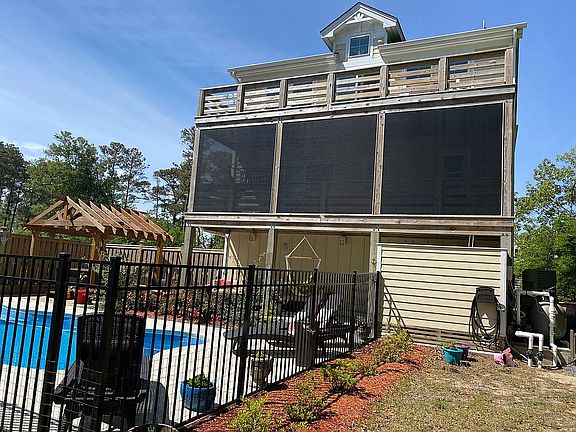 Enjoy island living in the community of Sunrise Crossing, Colington's finest neighborhood. New roof & new exterior paint 2021. Three floors of living space & the elevator shaft is already in place! Cook's kitchen features granite countertops & island. Great rm is flooded w/natural light & gives access o rear deck overlooking the beautiful backyard. Master suite on main level of this reverse floor plan beauty. JR master w/ screen porch to take in the peaceful views. 2 add'l FLEX rooms. Entertainer's paradise w/ 34' inground pool, hot tub & outdoor shower. The island & beach are calling! Garage with loads of storage area. Extra driveway space included! Community dock & kayak launch to enjoy the natural surrounding beauty. Washer and dryer are AS GIFTS. Owner does not pay flood insurance. Home is in X zone.