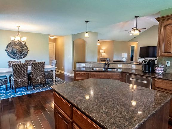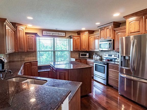 Here is everything you have been looking for! Walk out basement in Briarbrook on a 1-acre lot. The living room and eat-in kitchen flow together in this open floor plan with a lovely window seat overlooking the wooded back yard. The kitchen features dark wood cabinets, stainless appliances, and granite counters. Two large bedrooms are located on the main floor with two additional bedrooms in the basement PLUS a home theater room, family room, and office. This full brick home has a 3 car garage storm shelter and garden shed. All on a quiet side street in Briarbrook golf course community with access to community pool and trails.