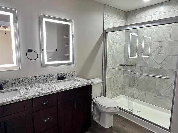 - Ceiling Fan(s), Kitchen/Dining Room Combo, Vaulted Ceiling(s), Walk-In Closet(s), Kitchen Island, Solid Surface Countertop(s), Double Vanity, Shower
