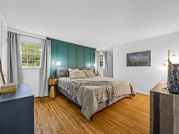 Welcome home to this lovely colonial in a cozy neighborhood, perfectly tucked away on a tree-lined street. Minutes from expressways, shopping, and downtown, the location is ideal. Hardwood floors stretch throughout the main living spaces and bedrooms, creating a warm and welcoming feel. The kitchen features plenty of counter and cabinet space, a convenient breakfast bar and a pass-through window that opens the sight lines to the living area, making it easy to stay connected while cooking or entertaining. A sliding glass door leads to a cozy patio—complete with a fire pit—perfect for relaxing or gathering with friends. The first-floor laundry room, located near the garage, adds everyday convenience. Upstairs, the spacious primary bedroom offers two closets, including a walk-in that provides space for dressing and organization. The third bedroom features a funky accent wall—perfect as a home office or for a stylish Zoom backdrop! With generous closet space throughout and a charming front porch for enjoying quiet mornings or evening sunsets, this is a home not to miss. 30 year arch. roof, HE furnace regularly maintained, hot water tank '22.