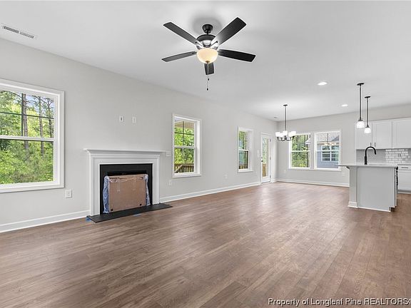The Kenzie by Dream Finders Homes opens to the foyer that leads you to the beautiful family room with a fireplace. It has a large kitchen with island and eat in area. The primary suite, which is located on the second floor has a large walk in closet, a bathroom with double vanities and a standing shower. Three additional bedrooms, a full bath and the laundry room are also located on the second floor. A rear covered porch is perfect for outdoor entertaining. This home is located on a wooded lot. POA dues include internet, access to the onsite fitness center and much more! Financing incentive, $15,000 closing costs and Blinds with partner lender Jett Home Loans. Preferred Attorney is Costner Law.