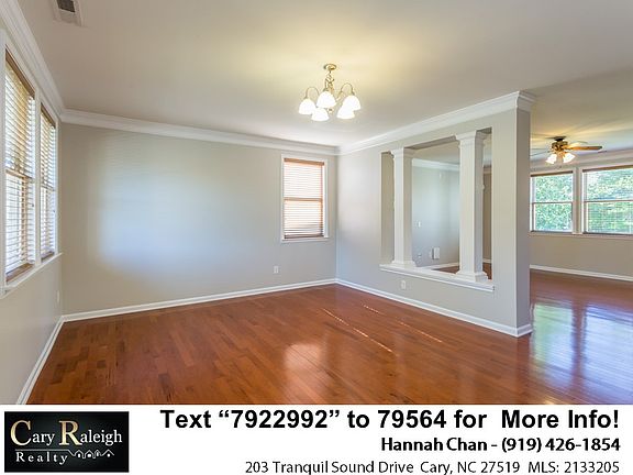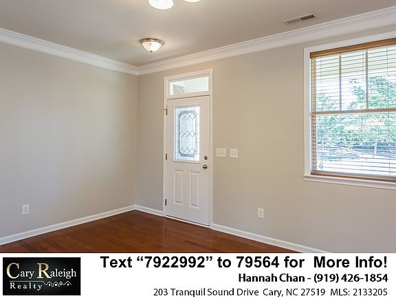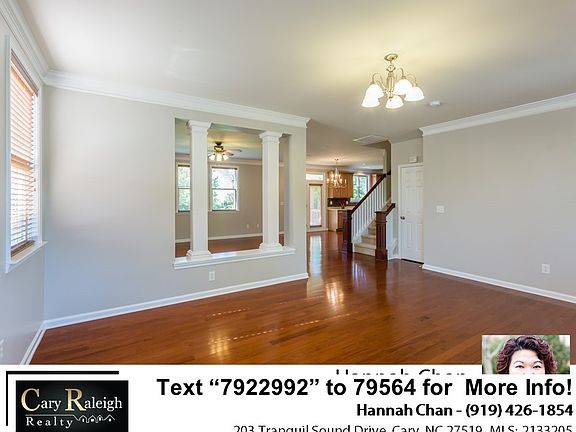 A Single family home in Twin Lakes in front of open park for privacy. Lovely open floor plan w hardwoods throughout 1st floor! Upgraded kitchen with back splashes, SS appliances and center kit island. Luxury master suite, Oversize bedrooms & huge loft on 2nd floor. new carpet and painted, stamped concrete driveway and tons of upgrades! Relax on the screen porch! Nice amenities & walkable to club house! Mins to shops, schools, doctors, RTP, Airport, I-540, 55 and everything! Must See!