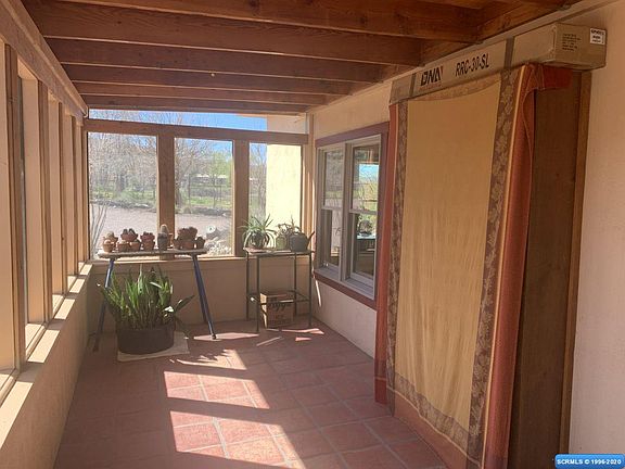 This beautiful 3-bedroom/1-bath adobe home sits on roughly 1-acre of fertile, shaded property on a quiet and secure back country road. The house was completely remodeled with all new wiring, plumbing, septic system, ceiling dry wall and insulation, stucco, and standing-seam metal roof. The property has running irrigation water, dark skies, and a constant parade of birds and wildlife. Inside features include tall ceilings and fans, hardwood floors, new Andersen windows, custom woodwork, and extensive recessed lighting on dimmers. A spacious Spanish tile countertop, rich pecan-finish cabinetry, and a built-in range with convection oven round out the kitchen amenities. The 8x28 screened-in, east-facing front porch has natural 12" terra-cotta tiles. A 3-acre feet stock and domestic water right is attached to the drilled well. Extensive insulated storage upstairs and a walk-in, freeze-proof basement are nice extras. The woodstove shown in the photos does not convey. (APPOINTMENTS ONLY)