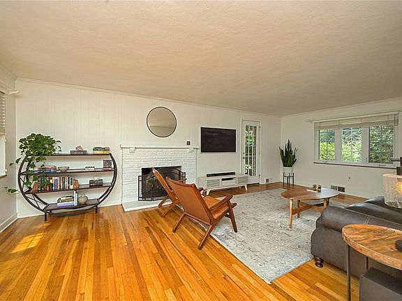 Charming Colonial in North Hills Estates! Move-in ready two-story brick home with 3 bedrooms and 1.5 bathrooms. Original hardwood floors flow throughout the entire home and all walls have been recently painted! The first floor boasts a spacious living room with a beautiful gas fireplace, dining room, half bath, and updated kitchen with gorgeous Corian countertops, new gas stove, and subway tile backsplash! Large landing on second level leads you to all bedrooms and the beautifully maintained full bathroom. Tastefully remodeled finished basement. New amazing covered patio off of living room which overlooks the vast, flat, fenced-in backyard! Impeccable landscaping has recently been redone. Convenient location and such a sense of community in the neighborhood!