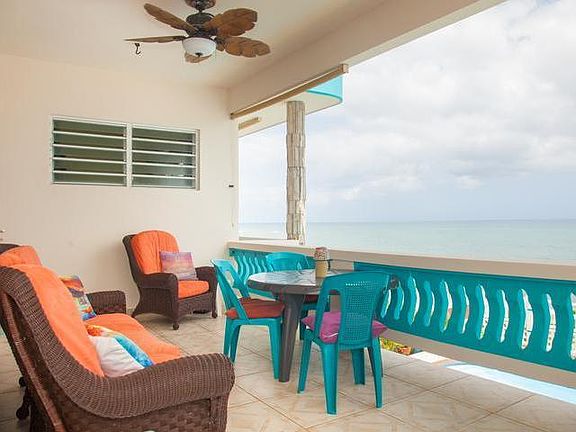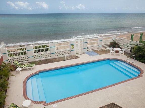 Prime property with 50 ft beach front combined with incredible sunset views and walking to surf breaks; this property has all you need to start your dreamed Caribbean lifestyle. With more than 2600+ sq ft this property offers that desired space for big families or for vacation rental purposes. Currently divided into two units but could easily be converted on a 3 unit, having lots of potential for income. Characterized by privacy and natural light with a good-sized pool and just a short drive to Rincon or to all the amazing restaurants in Aguada. Villas del Atlantico is a dead end area making it quiet and secure. The top floor has three bedrooms (each with a balcony), 2 bathrooms and the front terrace with a view that will melt your day away. The first floor has a one bedroom unit and an open entertaining area with full kitchen, big storage room, and full bathroom. The property has its own private access to the beach and it is also protected with a seawall..