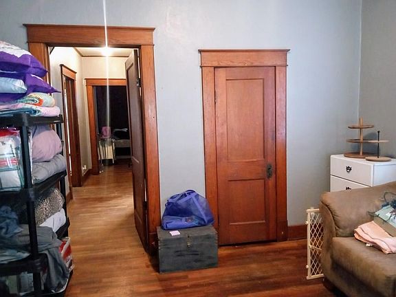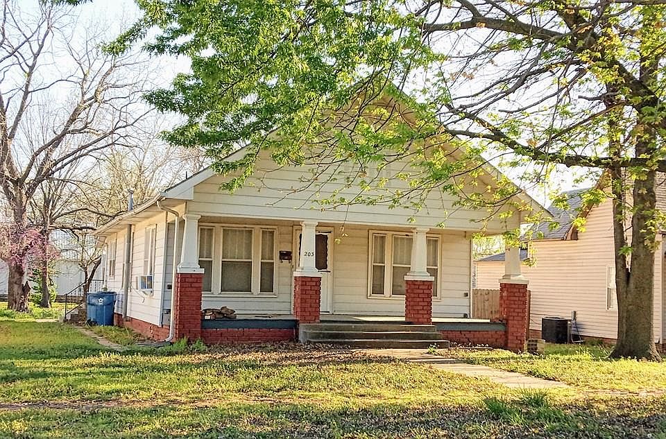 Don't miss out on this super cute bungalow. This is a solid home with Metal Siding and vinyl surrounding eaves/soffits for low maintenance. Newer back door and new storm doors back and front, all original windows with added storm windows. 2 new window units that are for heat/cool air. Floor furnace is not used but believe still connected. Back up gas ventless heater stays. All new electric and some newer pex plumbing. Seller says the foundation is solid. Most of the woodwork has not been painted and in great condition. Nice hardwood floors in dining, living, bedrooms and hall. Super cute kitchen with lots of cabinet space and a separate spacious laundry room and large full bath. The home itself (with couple minor requirements) could pass first time homebuyer loans, but condition of detached garage and shed likely would not, buyer should verify with lender. Make your appointment today.