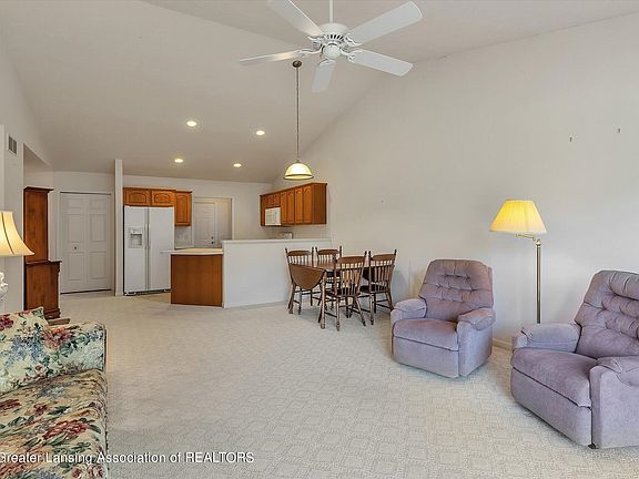 Incredible one owner, Motz built, ranch style condo in St. Johns school district offers 3 bedrooms, 3 full baths and a nice open floor plan. The main floor primary bedroom has a great walk in closet and bath. This condo has first floor laundry, tons of storage space, a new roof, updated a/c, attached 2 car garage with wheel-chair ramp, mostly finished basement, deck and gorgeous green space outside!