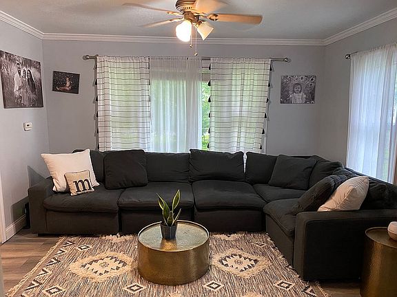 Cute little 2 bedroom, 1 bathroom (jack and Jill) home has a large patio with built in seating for entertainment, stamped patio, on a fenced in corner lot with a detached garage. Features canned lighting in kitchen and master bedroom, & crown molding throughout. Deck in 2011. Efficiency windows in 2010, siding in 2011. Flooring in kitchen and living room 2020. 217.823.9217