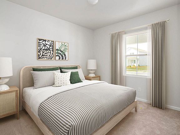 Discover this pond-view lot, showcasing luxury vinyl plank flooring throughout and a covered lanai perfect for relaxation. The home boasts a private owner's suite with a spacious walk-in closet, large secondary bedrooms, and a kitchen equipped with a generous island, white quartz countertops, gray backsplash, and white cabinetry. Additional features include faux wood blinds, a Whirlpool refrigerator, washer, and dryer, as well as smart home amenities like a Ring doorbell and Honeywell smart thermostat for added convenience. Photos are of Similar and/or Model Home and/or Artist Rendering.