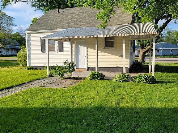 Check out this affordable home located on a corner lot! This property would be a great starter home! The home features a galley kitchen with ample cupboard space, living room with large picture window to bring in natural lighting, 2 bedrooms, and a full bathroom. Full unfinished basement with laundry and plenty of space for all of your storage needs. Detached 2 stall garage! Enjoy relaxing or grilling out on your back covered patio! This home has a cozy feel and is move in ready! All appliances and 500 gallon LP tank to stay! Updates include flooring, paint, electric water heater and water softener in 2024, updated electric panel, added 2nd bedroom, and new front and back doors. You don't want to miss out on this one. Call today to set up your private viewing!