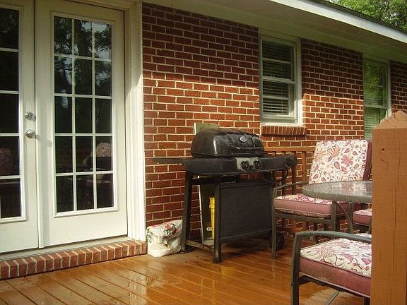 Enjoy quiet neighborhood in this well-maintained home! 3 Bedroom BRICK ranch. Fireplace, Hardwood Floors,(No Carpet), Ceramic Countertops. Ceiling fans throughout! Roof and HVAC new in 2009. Fenced Backyard. New Deck/French Doors. New Tankless Water Heater. New Front Storm Door. Refrigerator stays! Metal carport stays! Peach trees.