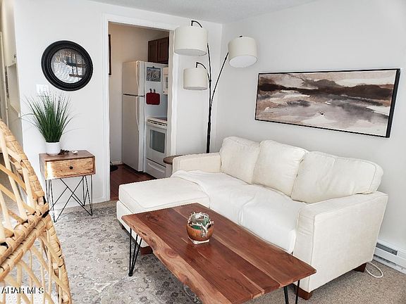 Blue Knob RCC - Meticulously remodeled furnished loft condo with skylight, woodburning fireplace, vaulted ceiling, spiral staircase to loft. Located near indoor pool. Seller just installed new sliding glass door and isin process of putting in new trim around door. Enjoy the great amenities package: indoor pool, outdoor pool, hottubs + tennis (golf & skiing for a fee). HOA fees $290/mo include outside maintenance, snow removal + amenities. J-612