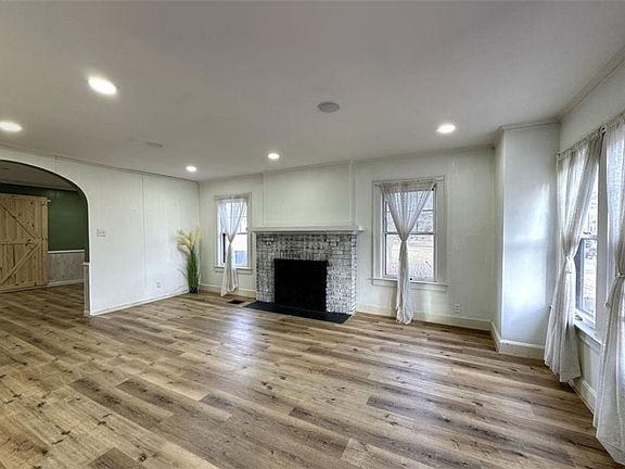 Charming 3 bedroom 2 bath brick Bungalow with arched doorways, rec room with bar and full bath in basement. New in 2023 are 21 new LED lights around the house along with Bluetooth speakers within the two bedrooms and living room, WiFi Ecobee, kitchen sink, dishwasher, refrigerator, upstairs bathroom vanity, toilet, LED mirror and all new flooring on the main level except 1 bedroom. This home features a very private patio and a 2 car garage.