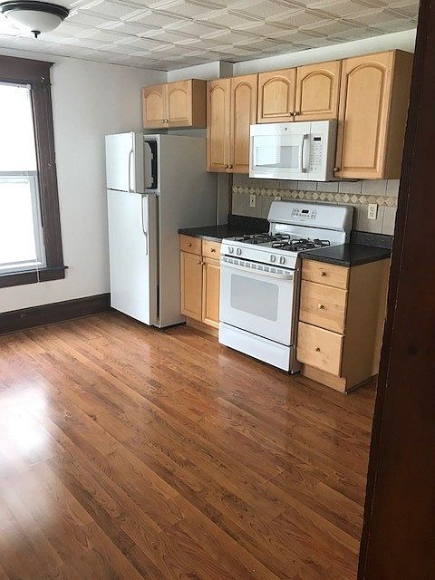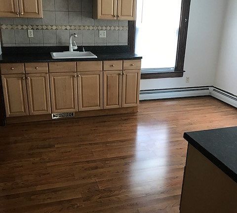 Renovated 2 Bedroom 1 Bath apartment in newly restored Victorian Building. Spacious, bright and airy with large eat in kitchen. Original hardwood floors in living room and bedrooms and original woodwork throughout. Large bathroom with cherry cabinetry. Quiet neighborhood. Off street parking for 2 cars. Close to Thruway, Trailways Bus Terminal and walking distance to Uptown Kingston. Natural Gas - Hot water baseboard heat. Tenant pays all utilities Water and garbage included Smoke Free Building No pets
